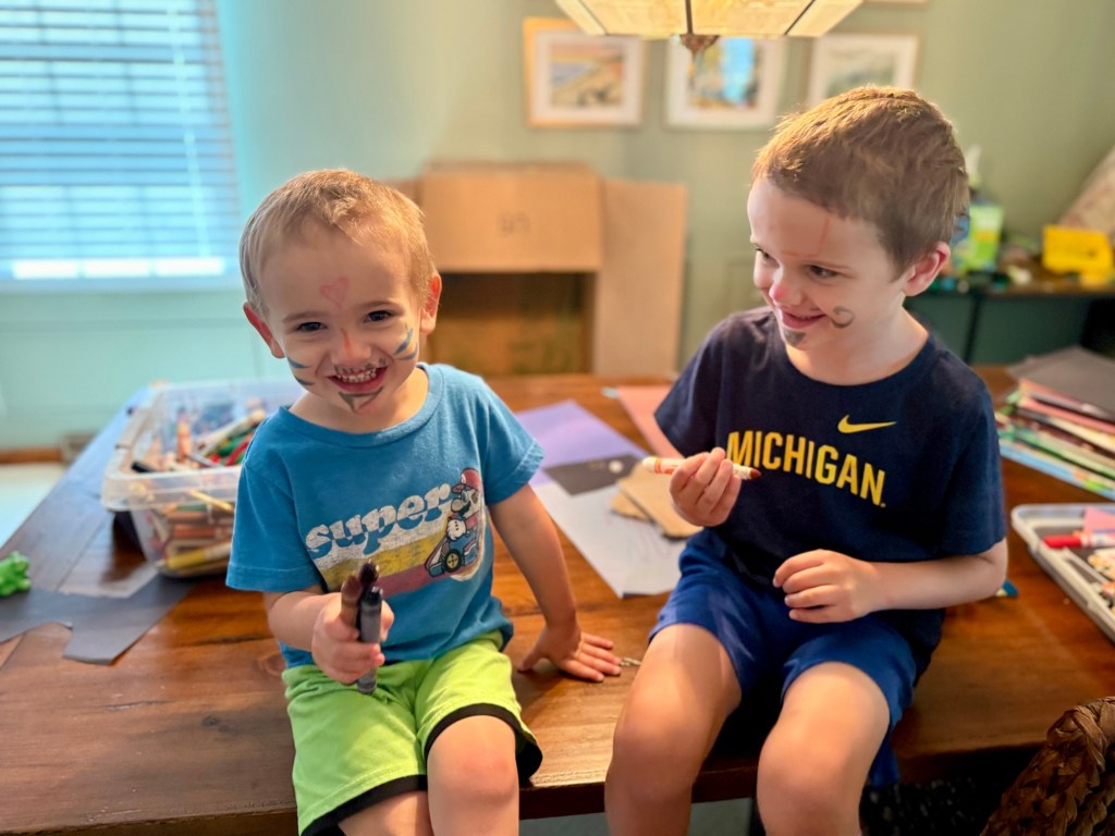 Surrounded by uncapped markers like he’d conjured a preschool séance. His eyes locked with mine. His tiny hand gripped a yellow Crayola marker like it was forged in fire. He raised his prize like a flaming sword & pointed it at me.