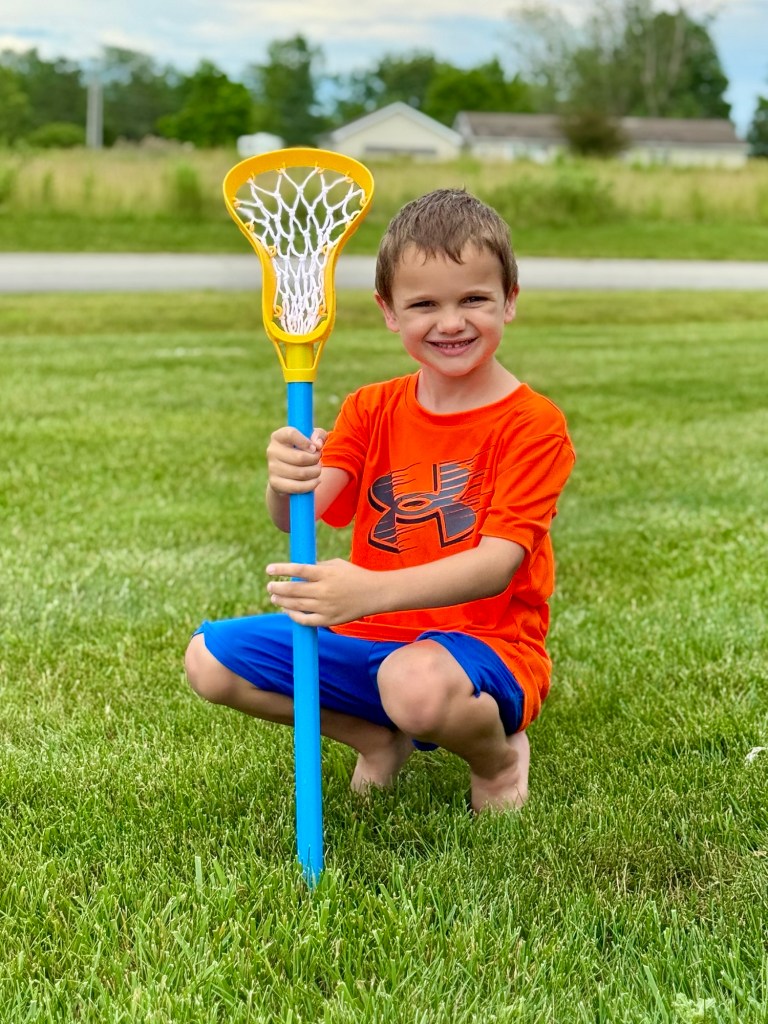 Holding a lacrosse stick like it was either Excalibur or a very long spoon.