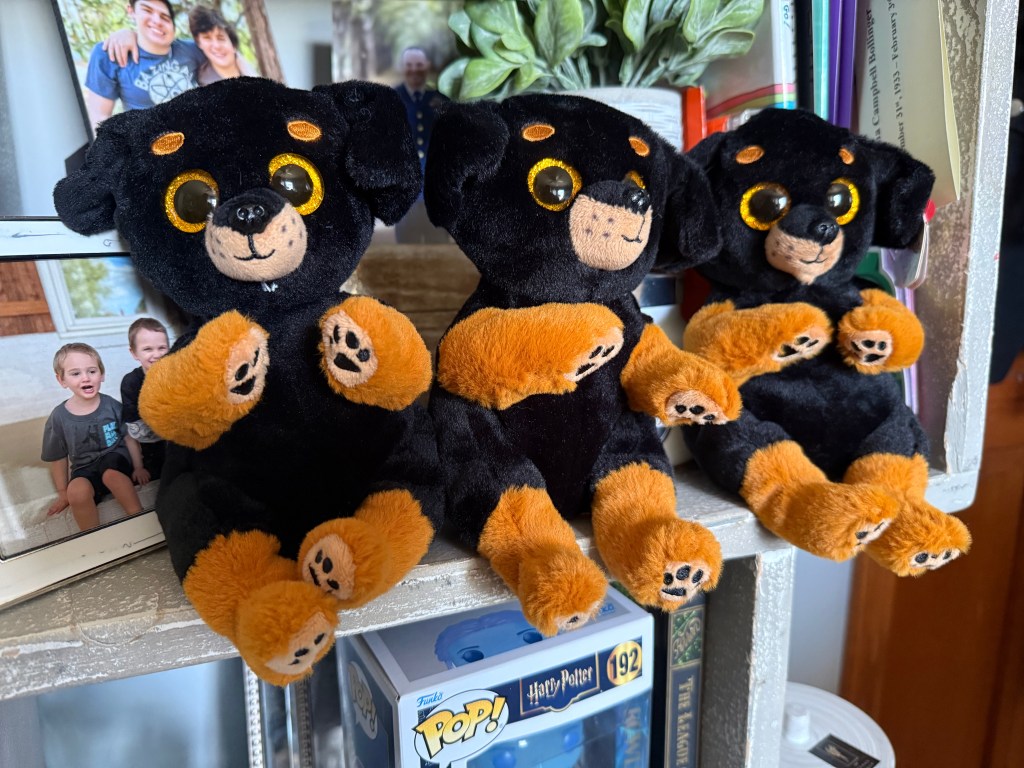 Two sets of little eyes locked on the same tiny Rottweiler.